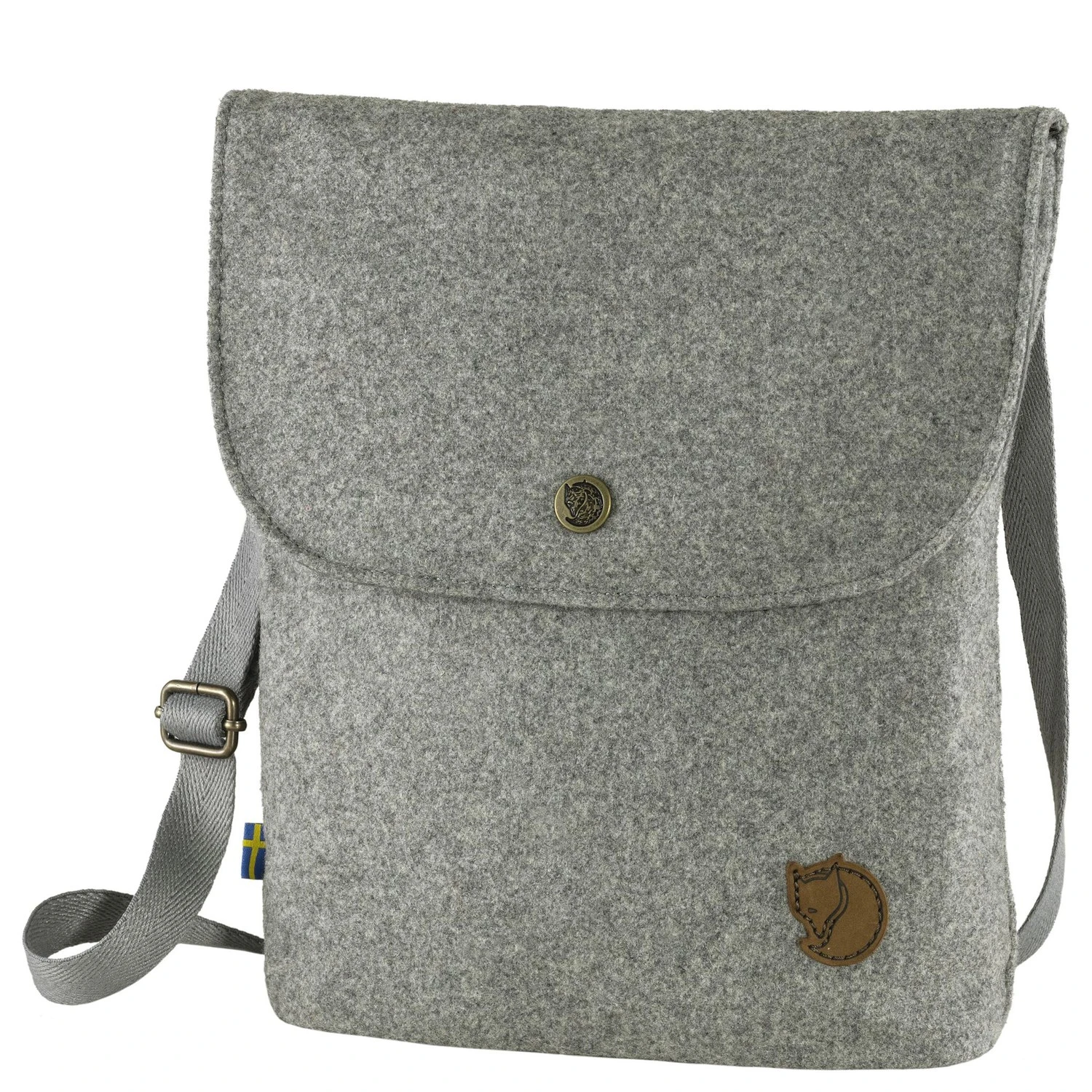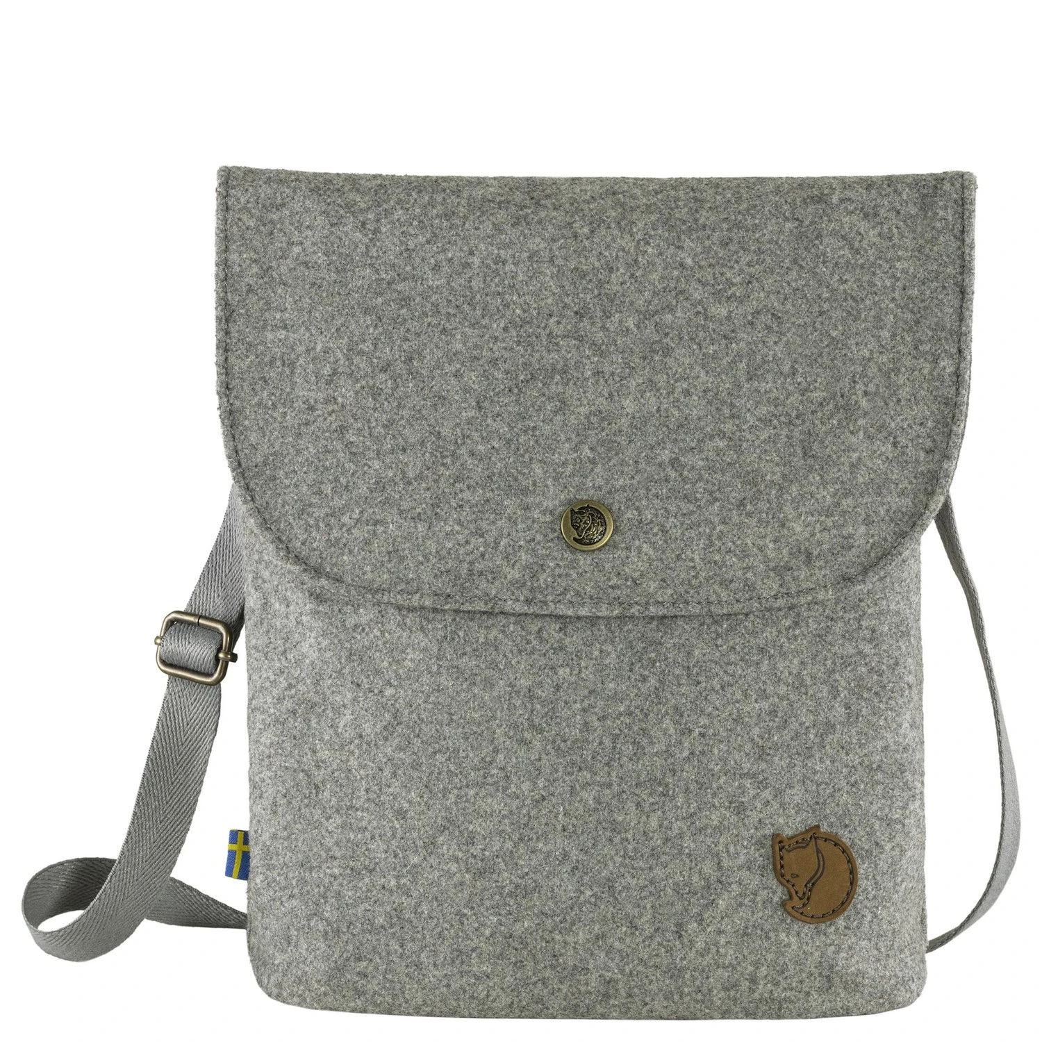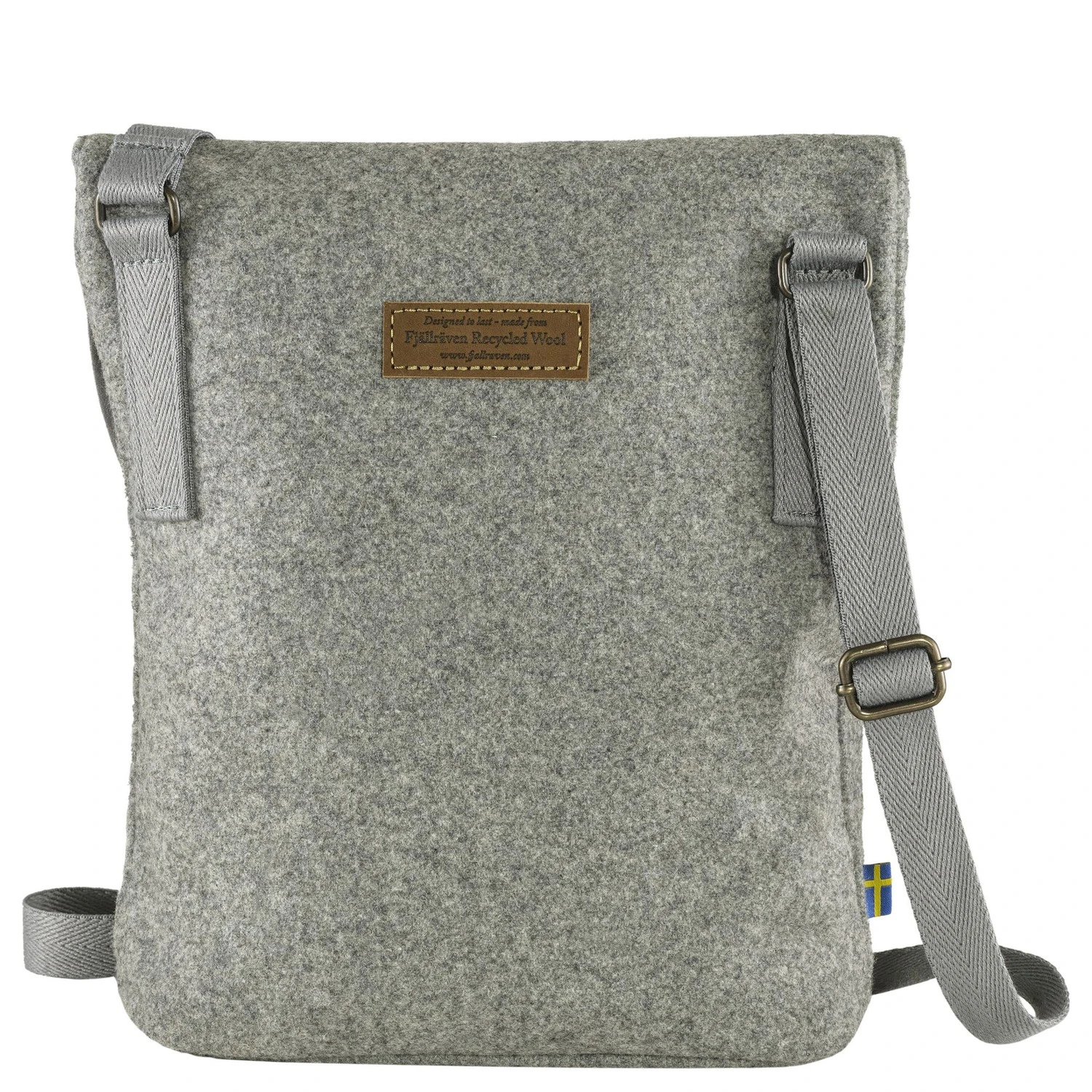 Kleine, schlichte Umhängetasche aus recyceltem Wollstoff mit einer klassischen Optik.