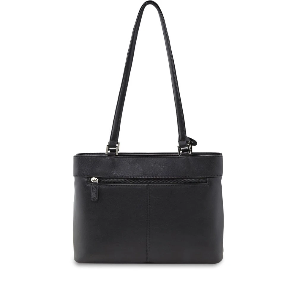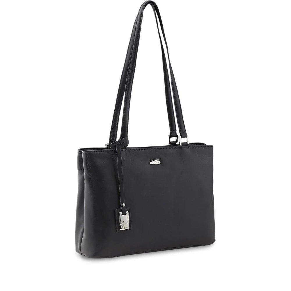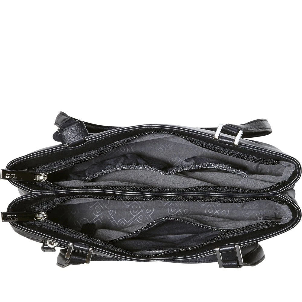 Dieses Modell begeistert schon auf Anhieb durch die edlen Really-Attribute – das hochwertige, weiche Glattleder mit dem edlen Glanz. Ein breiter Boden gibt diesem Shopper die beste Basis für den Besuch interessanter Shops und ist auch dem Besuch von Eisdielen und Cafés nicht abgeneigt, wenn er dann seine Funktionalität mit ins Spiel bringen darf. Zwei Reißverschluss-Öffnungen oben, die gleichzeitig ganz elegant eine Aufteilung für den Innenraum übernehmen und die beiden entstehenden Fächer sinnvoll strukturiert zur Verfügung stellen.